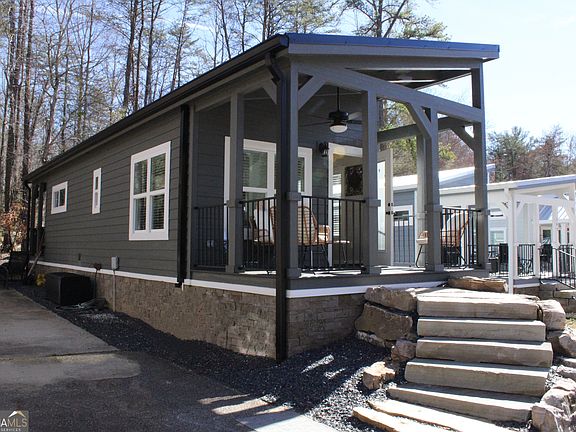 Experience the charm of tiny living in this light and airy 2024 Custom Maddox Model located in the private, gated community of Sugar Mill Creek at Lake Burton. This stunning 1-bedroom, 1-bath park model home is thoughtfully designed with an inviting covered front porch,ample storage and closet space, Beautiful bedroom opening onto a spacious screened-in back porch-perfect for relaxing and enjoying the serene surroundings. The bathroom boasts a custom tile shower, and the home remains under builder warranty until November 2025 for added peace of mind. The lot lease is $581.78/month, which includes water, septic, trash, grounds maintenance, and more. Fiber internet has recently been installed throughout the community, ensuring seamless connectivity. Sugar Mill Creek at Lake Burton is a resort-style community spread across 12 scenic acres, featuring: Dog Park Clubhouse Outdoor Fire Pits Community-Sponsored Events Streams Throughout the Property Private Driveways & Parking Nearby Marina for Lake Access Conveniently located near Lake Burton, Laprades Marina, Moccasin Creek State Park, and local dining, this home is perfectly situated between Clayton, Helen, and Clarkesville, Georgia. Agent must be present at all showings-call for the gate code. Don't miss this opportunity to embrace low-maintenance, resort-style living! Schedule your showing today!