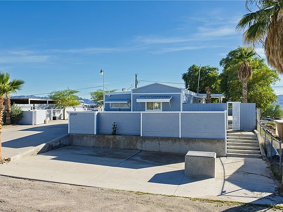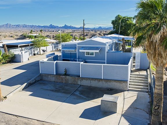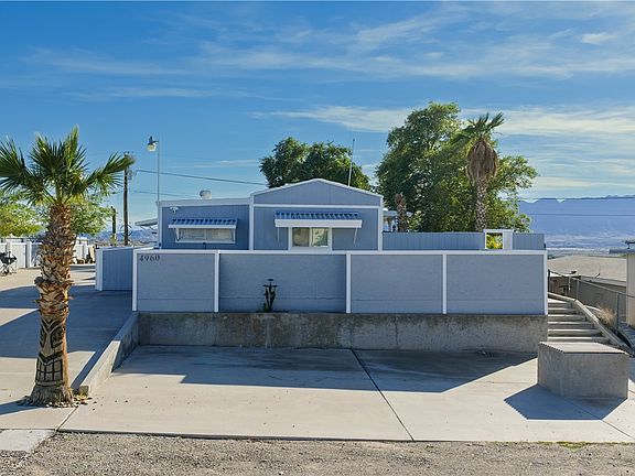 Welcome to 4960 Mission Dr. A beautifully updated 2-bedroom, 2-bath manufactured home offering comfort, privacy, and incredible desert and mountain views.Built in 1982 and situated on a spacious 10,000 sq ft lot, this 896 sq ft home has been thoughtfully improved inside and out. Step inside to a completely updated kitchen featuring modern cabinetry, newer appliances, and a large island perfect for cooking, entertaining, or gathering with family. New tile flooring runs throughout the home, adding durability and a contemporary feel. Fresh retractable blinds provide style, privacy, and energy efficiency. Outside, the property shines with features rarely found at this price point. RV parking with full hookups, an impressive outdoor fireplace, and multiple patio areas ideal for relaxing or hosting. A large, mature shade tree highlights the backyard, surrounded by manicured turf for a clean, low-maintenance space the whole family can enjoy. Additional amenities include an outdoor laundry room and a separate utility room equipped with A/C, perfect for use as a home office, workout space, hobby room, or extra storage. Whether you're looking for a full-time residence, a desert getaway near the Colorado River, or an investment property, this home delivers value and charm in one of Topock’s most peaceful neighborhoods.