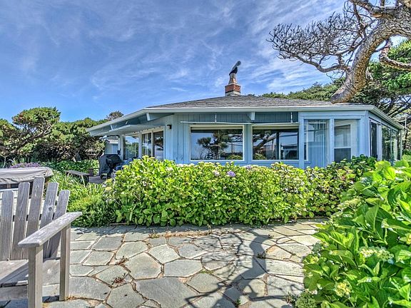 The Patio House on the ocean! Enjoy fabulous Oregon Coast sunsets from this quaint single level oceanfront home. Spacious stone patio features a firepit for warmth on coastal evenings. Rare direct beach access to miles of sandy beach. Unique octagonal shape with vaulted ceilings takes advantage of the ocean views. Currently a vacation rental, this could also be a primary or vacation home. Located @ 3 miles south of Waldport and Alsea River with Yachats just another 6 miles down the road. Fishing, crabbing, boating, hiking and golf and more are just minutes away. Reward yourself with the coastal lifestyle today !