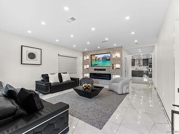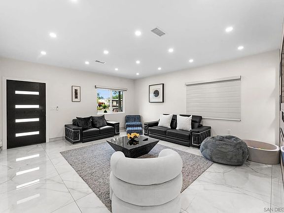 Welcome to 4961 E Mountain View Dr, an exquisitely remodeled home in the heart of Normal Heights! Completed in 2024, this 4BD/3BA single-level gem offers modern luxury. Enjoy elegant porcelain tile flooring, designer lighting, and an open-concept layout that flows seamlessly from the chef’s kitchen—featuring a large island and premium appliances—to the inviting living area and private backyard with a luxurious pool and gazebo, perfect for entertaining. The spacious primary suite includes dual sinks, a walk-in closet, and a stunning spa-like bath. At night, the home comes alive- it's warm exterior lighting highlights every detail, creating a stunning, inviting glow that captures true curb appeal. Additional highlights include a shared driveway, ample parking, central forced air, and fresh landscaping. Situated on a 19,235 sq.ft. lot near parks, shops, and dining—this home blends style, comfort, and location in one of San Diego’s most vibrant neighborhoods!