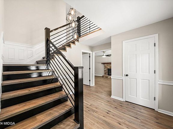 Huge price improvement! Won't last long! Make your appointment today! Nestled within the Wesleyan Woods subdivision and Springdale school district in North Macon, this home presents a modern living experience. As you explore the interior, notice the designer upgrades, including new light fixtures, updated kitchen and bathrooms, freshly painted walls contributing to an inviting atmosphere, making every corner of this home feel warm and welcoming. The main level has new luxury vinyl tile in the living areas, a separate living room, a formal dining room, and a spacious den featuring a cozy fireplace. The kitchen, equipped with new quartz counters, tile backslash, stainless steel appliances and a gas cooktop, effortlessly leads to a delightful breakfast nook. Convenience is at your fingertips with a separate laundry room and an attached two-car garage. Upstairs, four bedrooms offer privacy, accompanied by two full baths. The timeless appeal continues with brick wrapping around all four exterior sides, offering a low-maintenance lifestyle. The large backyard, complete with a deck and a fenced-in area, offers a peaceful retreat on a quiet street. Its location ensures easy access to various amenities, making it an ideal choice for those seeking both comfort and convenience.