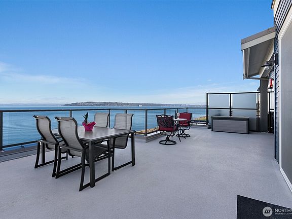 The invigorating Puget Sound & Mt Rainier views will have you patting yourself on the back for a great decision. 9' ceilings add to the spacious feel as you relax or entertain in the great room w/gas fireplace, coffered (lighted) ceiling that opens to your lovely VIEW deck. Comfortable dining area is open to the Quartz & stainless kitchen. You'll feel spoiled w/ the fantastic view & direct access to the patio in the primary suite + private BR including heated tile floors, dual sinks & walk-in shower + walk-in closet w/organizers. 2nd BR w/built-ins + 2nd bath are ideal for guests or a perfect den. Laundry RM w/sink, storage + W/D included. 2 parking spaces + storage. 3rd floor Community RM w/kitchens + 5th floor courtyard & activity area.