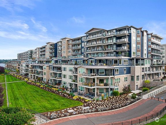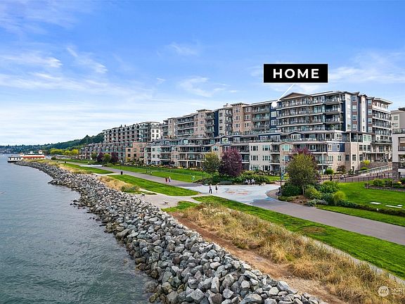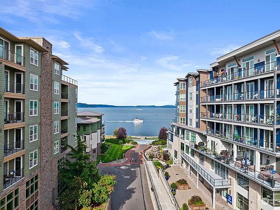 Every day feels like a vacation in this Penthouse level 2BR, 1.75BA condo w/sweeping Puget Sound VIEWS. Easy-care hardwood floors & 9' ceilings throughout create bright, spacious living spaces. Enjoy the cozy gas fireplace in the great room or venture onto the deck & drink in the view. Chef's kitchen features stainless Bosch appliances, Quartz counters & full-height backsplash. Spoil yourself in the luxurious primary suite featuring deck access, spacious bath w/dual sinks, heated floors, Quartz counters, shower w/seat + walk-in closet. 2nd BR + Continental 2nd full BA ideal for guests. Laundry room w/sink includes washer & dryer. 2 Parking spaces in garage + storage outside the door. Begin a new waterfront lifestyle at Point Ruston today!