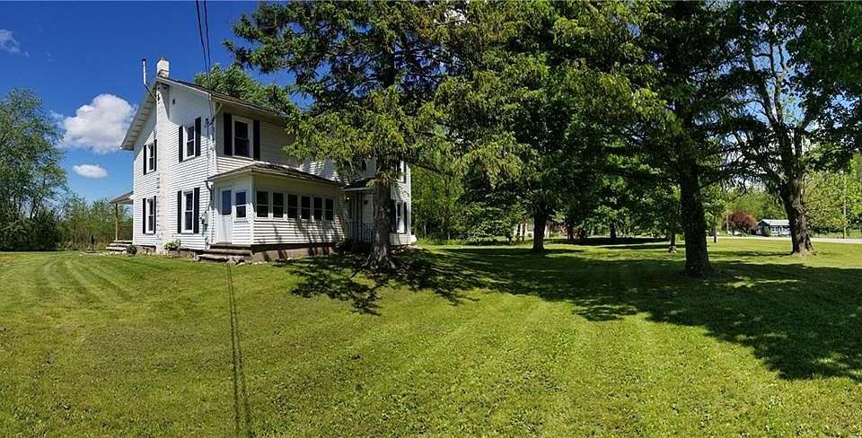 Stunning Circa 1825 farmhouse colonial nestled on nearly 2 acres of scenic splendor! Completely remodeled with new white Shaker design kitchen cabinetry with new Formica countertops and all new stainless steel appliances! New woodgrain look laminate flooring on 1st floor and freshly resurfaced oak hardwood flooring throughout the upper level! First floor master bedroom with completely remodeled full bath, combo powder room and 1st floor laundry off the kitchen. Fresh wall décor thruout! New forced air gas heating with air cleaner and humidifier (1/2020),walkout basement with Bilco doors, newer white vinyl siding. Double wide paved driveway with 6-8 car capacity. Mudroom and enclosed 3 season room.