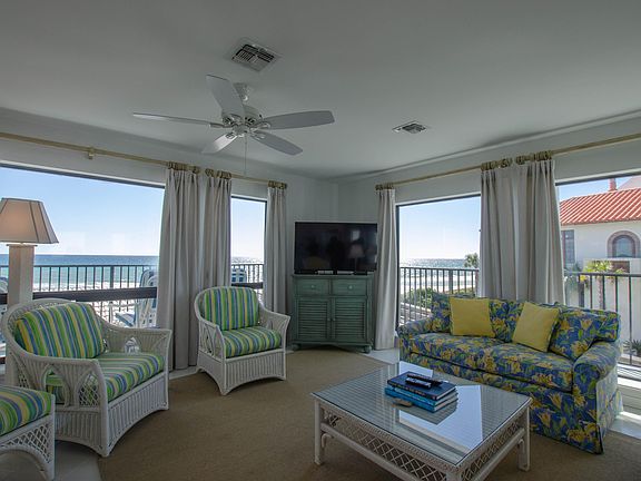 Enjoy stunning sunsets over the Gulf of Mexico from this well maintained unit at The Pams of Dune Allen on 30A. This condo has three spacious bedrooms each with it's own en suite full bathroom. The kitchen has a large island with bar seating that overlooks both the dining and living rooms. Updates include all new appliances, new paint throughout and new furnishings and decor. The master bath features a large double vanity as well as a spacious shower. The Palms of Dune Allen is a gated gulf front condominium located on the west end of Scenic Highway 30A. Just a short drive to shopping, restaurants and entertainment located in Gulf Place. Grand Boulevard at Sandestin with fine dining and shopping. And the charming beach communities of Grayton Beach, Watercolor and Seaside.