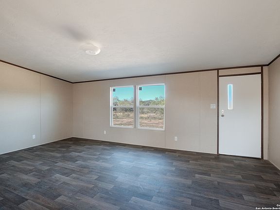 Country living with city convenience. This is a complete move-in ready package including land and all site improvements! Enjoy a large open space for barbecuing and entertaining. Over 1 acre of land is all yours. Close to IH37 and just South of San Antonio. This home includes smart panel siding, 16' dormer, thermal zone 3 insulation, black dishwasher, stove, and fridge, LED lightbulbs, and vinyl flooring throughout. *Property Qualifies for USDA 0% down program. Find yourself in a great location with plenty of space between neighbors!