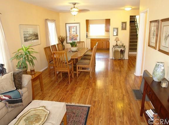 Beautifully remodeled, gracious & welcoming home nestled mid-block on a lovely street in a wonderful neighborhood! Meticulous & thoughtfully maintained. Very light, bright, open & inviting floor plan! Tons of windows thru-out to let the light stream in! Gorgeous engineered wood flooring, neutral designer color palette & smooth ceilings! Great LR w/nice dining area. Generously-sized family room w/sliding glass door to backyard. Custom remodeled kitchen with convenient door to side yard. Very convenient downstairs bedroom suite off of the FR w/its own private access to the backyard. Makes a great office too. 2 additional nice-sized BDs & a remodeled bathroom are downstairs off of the hallway at the front of the home. Remodeled master suite upstairs is very spacious, w/a walk-in closet & balcony overlooking B/Y that has a wide variety of flowers & plants, palm & fruit trees! Centrally located to great dining & shopping, schools, fwy access, parks/golf courses & other wonderful leisure & recreation & so much more!