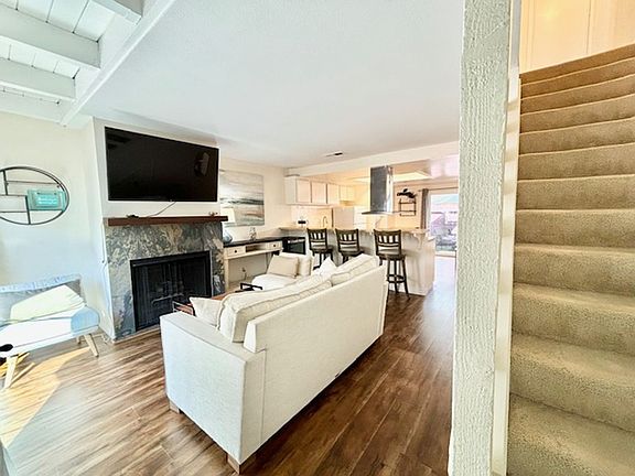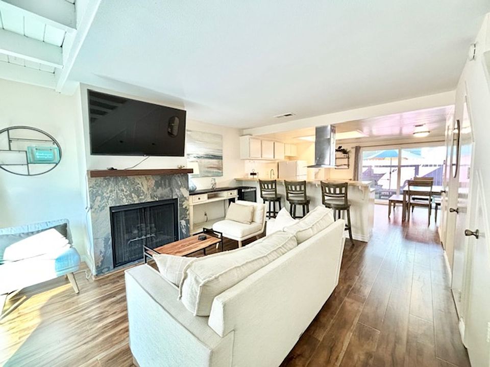 Experience coastal living in this charming 2-bedroom, 1.5-bath condo, ideally located just a short walk from the beach! As you enter, you'll find a secluded and private patio that sets the tone for relaxation. Step into a comfortable living room featuring a stunning stone accent fireplace, perfect for cozy gatherings. The spacious kitchen and dining area provide ample room for entertaining and daily living, with convenient access to the back patio. Plus, a washer and dryer in the kitchen add to your convenience, along with a stylish powder room for guests. Upstairs, both bedrooms await you. One boasts generous space and an expansive closet, while the other features mirrored doors and a charming private balcony, perfect for enjoying your morning coffee. The bathroom includes a shower-tub combo for your comfort. This home is bright and airy, enhancing your living experience. You can choose between furnished or unfurnished options based on your needs. Parking is a breeze with a single-car detached garage, tandem driveway parking (2 total spaces), and ample street parking available. Enjoy the convenience of being within walking distance to the beach, as well as close proximity to the harbor, eateries, and shopping. Don't miss out on this fantastic opportunity to live in Oxnard Shores! Contact us today for more information or to schedule a viewing!