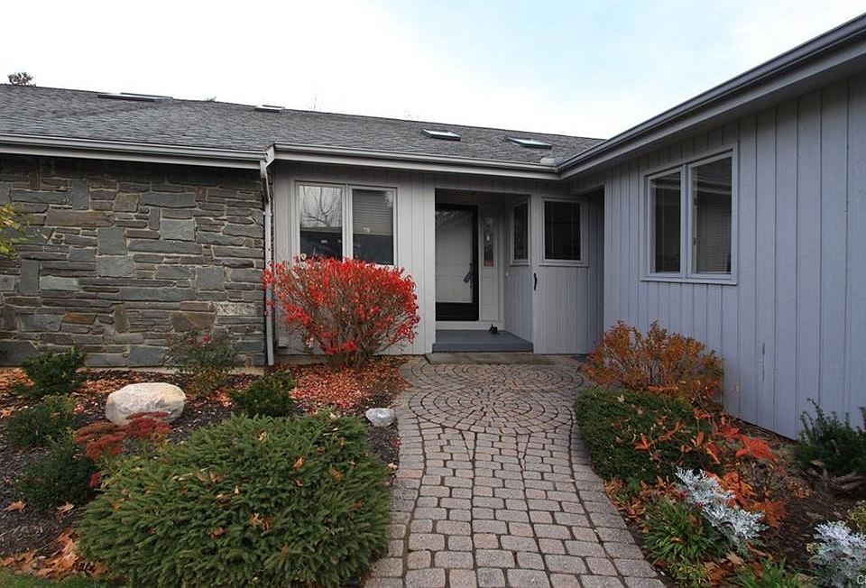 Open floor plan condo with 5 possible bedrooms. First floor owners suite, laundry, 2 full baths, kitchen, living and dining. Additional 3 bedrooms, full bath and dry storage in walk out lower level. Private deck that runs along the back of the unit has sliding doors from the living room and also the owners suite. Kitchen is large eat in with island and tons of cabinets. Very light and bright, tons of windows and skylights. Two car garage and double wide driveway for off street parking. Plowing, Landscaping and garbage removal included.