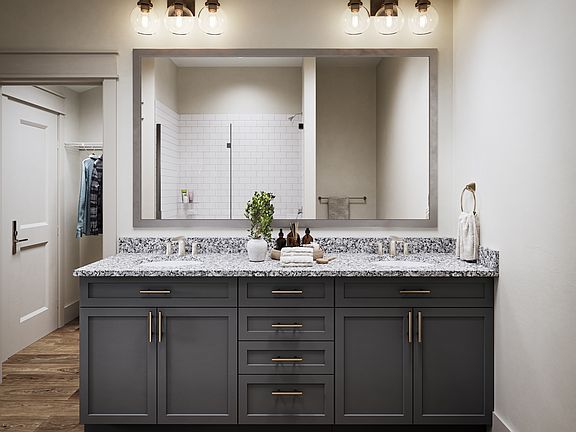 - Exterior features: 24 Hr Emergency Maintenance, Attached One and Two Car Garages*, Beautifully Landscaped Grounds, Custom Shower with Glass Doors, Energy Star Rated Appliances, Kitchen Island with Breakfast Bar, Luxury Plank Flooring, Maintenance Free Living, On-Site Management, Package Receiving, Pet Friendly, Planned Social Events, Pre-Wired for EV Charging Capability, Private Driveway, Quartz Countertops with Title Backsplash, Single Story Living, Smart Home Technology