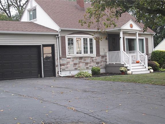 Welcome to 4963 Sunset Drive. This adorable cape is conveniently located in the Town of Lockport and has easy access to everything. Everyone knows the cute house across the street from Delphi. The hillside lot is dotted with maple trees, offers a newly expanded doublewide driveway with turnaround. Climb the front stairs to the composite porch. The center entrance leads to the welcoming living room to the right and dining room to the left; both rooms have laminate flooring and a large picture window which fills them with natural light. The dining room is open to the kitchen and coffee bar area. The kitchen is a little bit modern farmhouse with its black granite countertops, white cupboards and herringbone backsplash. In this circular flow, the updated full bath and primary suite complete the first level. The first floor is tastefully done in neutral colors; the primary suite is large enough to accommodate a king-sized bed and two nightstands. Upstairs you will find 2 more bedrooms, each with a large closet and wall to wall carpeting. The basement is divided into a mechanical side housing laundry, sump pump, storage, hot water tank (2019) and furnace. The other side is for entertaining with carpeting, a bar, TV, wine cellar, dart board etc. The theme of entertaining continues out to the newly created backyard oasis. A huge concrete patio with paver retaining wall is the perfect spot for outdoor entertaining. There is plenty of space to grill, sit around the firepit, enjoy an evening cocktail or play a game in the expansive green space. The yard is fully fenced and extremely private. There is a 2.5 car attached garage, central air and so much more to see here. The sellers have already secured their next home so don't wait on this one! Showings begin immediately and offers, if any, will be reviewed October 6th.