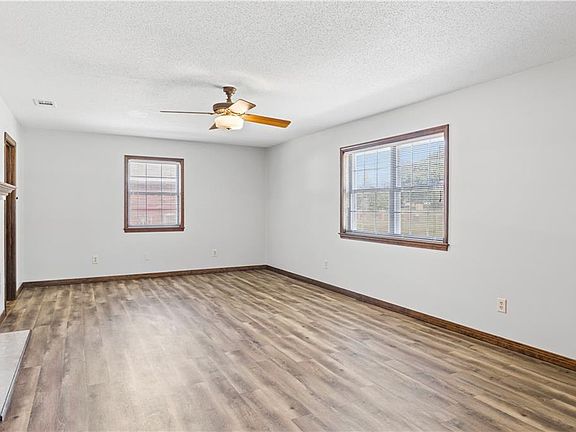 This approximately 1479SF brick home has had many upgrades. The metal roof is about five years old, water heater was replaced in 2024, new stove and vent-a-hood. This two bedroom two bathroom home has new flooring throughout except the bathrooms, which have ceramic tile. The laundry room is huge and could be converted to a third bedroom. The home features double windows, a carport and a detached garage. You will enjoy the fenced and shaded backyard and covered patio, to sit outside and enjoy your morning coffee or evening tea. The fireplace in the family room has gas logs that have never been connected. This home is convenient to shopping, schools, and churches. Hurry, it won't last long!