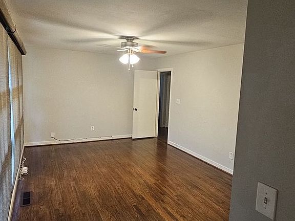 This move-in ready gem boasts three spacious bedrooms and a full bathroom. The house is adorned with hardwood flooring and ceiling fans, adding a touch of elegance and comfort. The kitchen is a chef's dream with a tile backsplash and granite style countertops. The house is bathed in natural lighting, creating a warm and inviting atmosphere. Step outside to a covered porch, perfect for enjoying a cup of coffee or entertaining guests.
