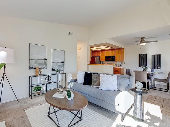 This charming 2-bedroom, 2-bathroom upstairs condo spans 840 square feet and offers an abundance of natural light, creating a warm and welcoming atmosphere. The thoughtfully designed layout includes an inviting family and dining area, recently refreshed with new paint and carpeting. The primary suite boasts a vaulted ceiling, adding a sense of openness and elegance. A generous private patio provides the perfect setting for outdoor relaxation and entertaining. Additional conveniences include a spacious one-car garage equipped with a washer and dryer, as well as a dedicated parking stall. Ideally located with easy access to major freeways, shopping centers, and top-rated schools, this lovely home perfectly balances modern comfort and everyday convenience