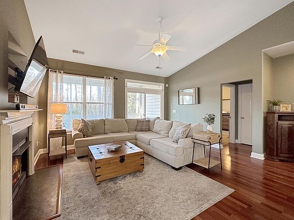 Not only is this beautiful, open concept home located in the highly desirable Wescott Plantation, it's also on the golf course!! All of the mowing, sprinkler maintenance, and annual pine straw replenishment is included in the HOA! Hardwood floors and a bright foyer welcome you into the living room that features a vaulted ceiling, fireplace, and access to the screened-in porch, patio, and private, wooded backyard that backs up to the golf course. The layout of the eat-in kitchen is great for entertaining and provides access to the formal dining room. The kitchen has ample counter space, cabinetry, and stainless steel appliances. The split bedroom floor plan provides privacy for the master suite which includes a vaulted ceiling, walk-in closet, and an en suite bath with a double vanity andand a walk-in shower. The large laundry room has a utility sink, front-load washer and dryer that convey with the property, and access to the garage. The two-car garage features a large, convenient workshop or extra parking for a golf cart and epoxy floors throughout! This home has access to amazing neighborhood amenities including golf, a neighborhood pool, a play park, and yard maintenance! Wescott Plantation is centrally located to Boeing, Bosch, Charleston Air Force Base, and it's only minutes away from shopping, dining, and entertainment in North Charleston and Summerville!
