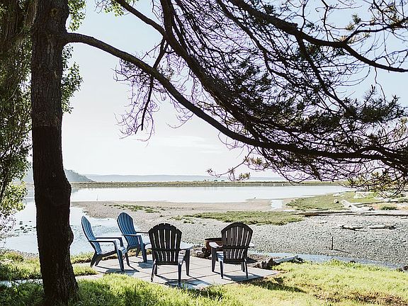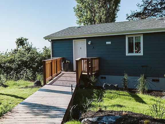 One of a kind waterfront a mile from Friday Harbor. Main residence is 35' from a rare tidal river and beach. Share the rhythm of the tides with wildlfe in the bay. View the Olympic Mtns and Mt. Rainier and see the sun rise over Lopez Island. Bordered on one side by University of Washington protected property.