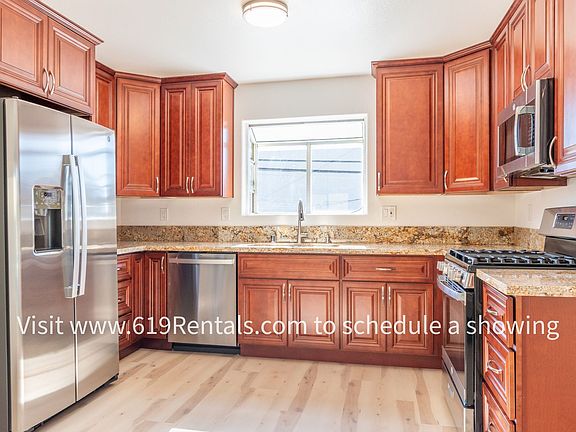 Remodeled 4 bedroom, 2 bath apartment with 2 car tandem garage. Very close to SDSU and Ralphs grocery store. Newer kitchen, vinyl windows, flooring, paint, bathrooms and more! Living room includes a fireplace and sliding door to balcony. 1200 square feet. Up to 2 small pets OK. Tenant pays all utilities. 2 car tandem garage and 1 additional space on side for parking. Washer/Dryer hook-ups in garage. Annual leases only. Available Now. Qualifications: At least 1 applicant with at least a 680 credit score. 2x rent in monthly income between adults (income after taxes and deductions). 5 years rental history with positive references or previous home ownership for at least 5 years. No previous bankruptcies or evictions. Annual leases only. Security deposit is the same amount as 1 month of rent. No extra pet deposit or pet rent required. Managed By: Property Management Executives Chris Bump, Property Manager 4901 70th Street, San Diego, CA 92115
