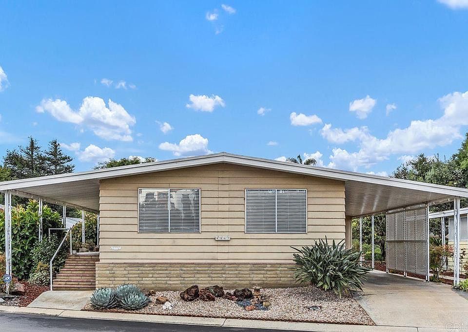 Welcome to El Camino Estates, a real Carlsbad gem. Introducing 4967 Cindy Ave., the only home in the community that directly faces the lovely community pool, offering a rare and relaxing view right from your doorstep. Guests will also find plenty of parking right across the street. This meticulously maintained home features 1,488 square feet of comfortable living space with large rooms, an open layout, and plenty of natural light throughout. The interior boasts a generous, updated kitchen, with sleek cabinets, perfect for everyday living or entertaining. The primary bathroom has been tastefully updated, creating a clean, contemporary space to unwind. Every room in the home feels spacious and inviting, with fresh paint and new carpeting, creating a perfect pallet for your own design choices. This home is truly move-in ready. You will enjoy the backyard, which comes with fruit trees and is easy to maintain. Beyond its appealing living spaces, this home also includes extensive soil remediation work beneath the home. You will enjoy the benefits of the extensive remediation work that included 1¼ tons of decomposed granite (DG) concrete, which provides stability and durability. To help neutralize any past soil concerns, lime and DG were carefully bucketed under the home, and ventilation ports were added to promote healthy air circulation and prevent moisture buildup. Additionally, the air handling system was modified to a fresh air intake system. Finally, the entire lot was recently (2023) re-rocked with 4 inches of new rock over new barrier cloth. These upgrades not only add peace of mind, but they also enhance the long-term integrity of the property. Don’t miss this rare opportunity to own a spacious, upgraded home with an abundance of proactive maintenance, in a pristine 55+ community where you OWN THE LAND. This prime location, with gated entrance and separate RV parking, surrounded by million-dollar homes, could be yours soon. Schedule your private tour today!