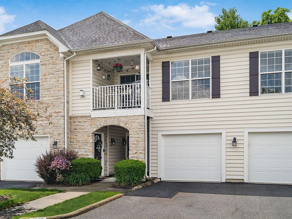 Spacious open floor plan ranch style second floor condo, Dublin address & Columbus taxes. 2 Bedrooms each with private bathrooms located in the popular Vinings community, close to Tuttle Mall, shopping & restaurants, with easy access to I-270. Great Room with gas fireplace & large windows, Dining Area, & Open Kitchen with breakfast bar. Laundry Room with newer washer and dryer that shall remain with unit. Primary Suite with walk-in closet & full bathroom. Bed 2 on opposite side of the living area includes walk-in closet & adjacent full bath. Balcony style Deck for outdoor relaxing, and a single car attached garage. Community amenities include a clubhouse (can be rented for events), fitness center and outdoor pool with pool-side lounge chairs. Water included with HOA. Immediate move in!