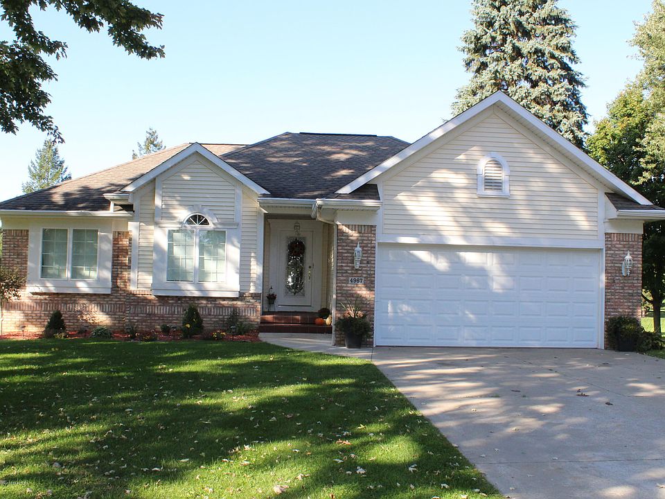Charming Walkout Ranch on the Golf Course! Main floor offers an open plan with entry, great room with gas fireplace, kitchen with white cabinets, granite counters and tile backsplash, added seating at the peninsula, dining area with sliders leading out to a deck overlooking the back yard and golf course, master bedroom suite including bath and walk-in closet, 2 other bedrooms, full bath and main floor laundry. Downstairs you'll find a landing area, large family room with walkout to patio, fullbath and office. Convenient location, close to 96 for your commute!