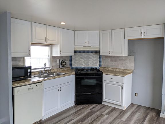 Sweet home with living room and kitchen located centrally and one bedroom with bathroom on either side of the home. Enjoy indoor laundry area and new flooring in kitchen, living room and hallway. The large living room has a raised ceiling and recessed lights. Outside offers a large front deck, back porch, off street parking and lovely flower beds with lots of grassy area for those outdoor days! This one is move in ready so pack your bags and come home!