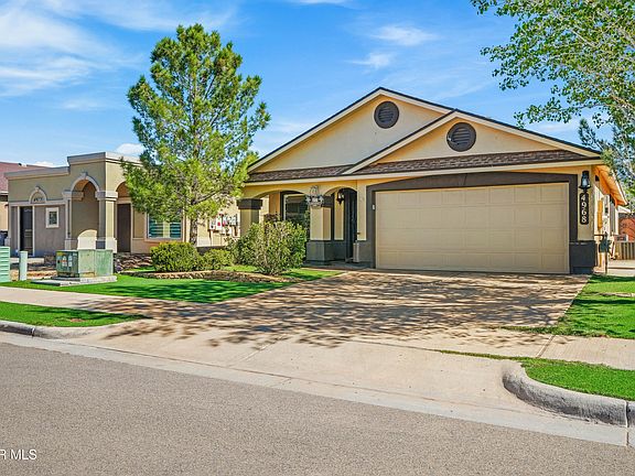Fall in love with this spacious 4-bedroom, 2-bath home featuring stunning curb appeal, complete with synthetic grass in both the front and backyard for easy maintenance. Enjoy stylish stamped concrete, charming shutters, and the comfort of refrigerated air. This home offers plenty of space for everyone and is perfectly located near shopping, schools, and parks with an easy commute to Loop 375 and Fort Bliss. Plus, paid solar panels help you save on energy costs!