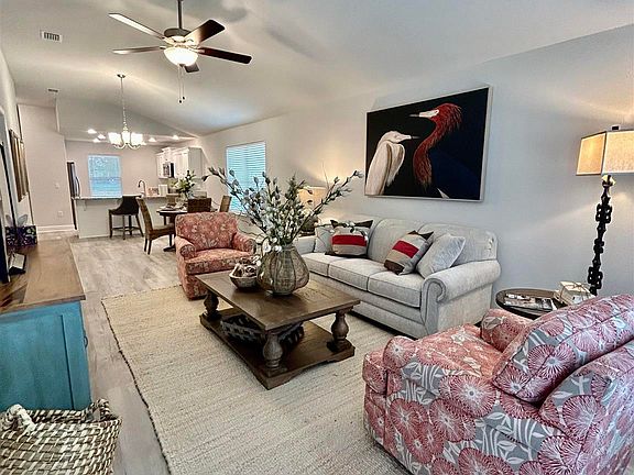 Completed New Construction Home Located on the west side of Pensacola where you can drive to NAS in 15 minutes. Shopping, restaurants, Gyms and parks are all near by. The 1454 is 3 bed and 2 bath open floor plan, the front door opens to a nice entryway with 2 bedrooms and a well appointed bathroom to the right. The kitchen is at the front of the home with plenty of cabinet space. Stainless steel appliances and garbage disposal in a large single sink with Moen faucet. The airy living room has a high ceiling that makes the home feel even more spacious. Dinning area and living room are combined to make this home flow from front to rear. The large master bathroom has enough room for a king bed and a sitting area. Tray ceiling adds a bit of class to the room. The master bath has a double sink and a garden tub. Out back you have a nice 10x14 patio to sit and enjoy your surroundings.Not All of the pictures are of this home, they are of a previously built home. Colors will differ.