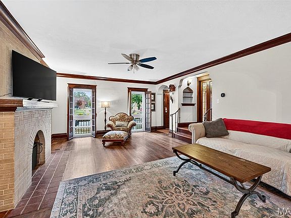 This is your chance to own a piece of Saint Louis History! Originally custom built by the famous Chapman Family (Chapman Ice Cream), this one of a kind home is full of historic charm, with modern updates we all love! Located in the sought-after South Hampton neighborhood this home is move in ready and waiting for it's next owner. You are greeted by a beautiful entry foyer that leads to the living room featuring hardwood floors, gorgeous and unique stained glass doors, arch doorways and large windows that fill the home with tons of natural light. The spacious living room leads seamlessly into a separate dining area, perfect for entertaining friends and family. The kitchen boasts granite countertops, beautiful custom cabinetry offering tons of storage space, stylish tile backsplash, convenient breakfast bar, and stainless appliances. A sunroom is located off the kitchen providing a great space for your morning coffee or cozy reading nook! The upper level features a full bath and 3 bedrooms all with hardwood floors and plenty of natural light. The partially finished lower level offers a spacious family room. Step outside to your private, fenced-in backyard oasis complete with a patio and a built-in stone firepit with a grill—perfect for relaxing or hosting gatherings year-round. Updates here include: NEW ROOF, Newer HVAC, PVC Lateral, Sump Pump/Pit, Refinished Hardwood Floors.