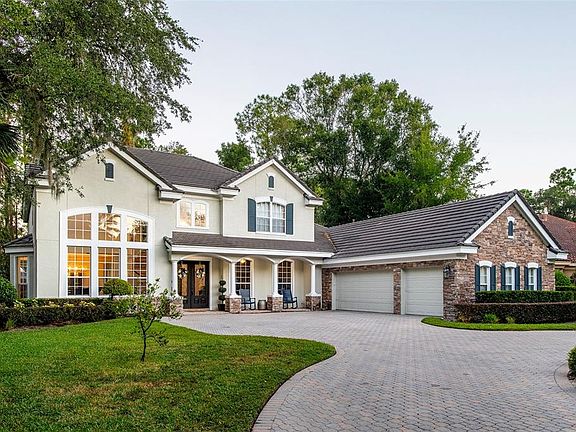 Fully remodeled executive home in the highly coveted community of Lake Forest with 4 bedrooms, 3.5 baths, office, bonus room, pool and 3 car side entry garage. Located on a quiet cul-de-sac lakefront lot. Travertine floors, soaring ceilings and a graceful curved staircase greet you upon entering. The kitchen was reconfigured for better functionality with all new cabinetry, a large center island with second full sink, GE Monogram six burner gas stove, built-in fridge, oven and microwave, walk-in pantry with wood shelves and quartzite counters. The family room renovations include a fireplace with floor to ceiling stone mantle, remote controlled blinds and alcoves with lower cabinets, wooden shelving and quartzite counters. Primary bedroom is downstairs and features a completely renovated bathroom with enormous shower (with multiple shower heads/jets), free standing tub, new vanities and storage cabinets, high end light fixtures and a private water closet with Toto commode. Connected to the bathroom is a very large walk-in closet with built-ins and center island for additional storage. A second door connects the closet to the fully remodeled laundry room. The living room, dining room and office are also located on the first floor. The generous sized office with hardwood floors and French doors could be converted into a fifth bedroom. The second floor consists of three bedrooms, two bathrooms plus a bonus room, all with wood floors. Two of the bedrooms share a remodeled bathroom with separate vanities. Enjoy the expansive lanai year round- heated saltwater pool, paver patio, large covered area, fire pit, and lake view! One AC replaced 2021, other two replaced 2025. Lake Forest offers a 24-hr guard-gated entry with resort style amenities: 10,000 sq ft clubhouse w/ newly remodeled fitness center, Jr. Olympic-sized swimming pool, heated spa, kiddie pool, playground, 55-acre private spring-fed lake, fishing pier, new lighted tennis and pickleball courts & a sports court. The community has been designated as a National Wildlife Habitat. Lake Forest is zoned for Seminole County schools and is close to beaches, attractions and all that Central Florida has to offer! Easy access to I-4, 417 and 429.