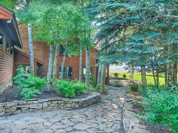 Enjoy your morning sunrises on the deck and dine on your secluded patio. The conveniently located mudroom with an additional entrance seamlessly integrates the garage and helps keep your home clean. An oversized garage with deep custom cabinetry throughout keeps your toys, tires, and tools neatly out of sight. Key features include hydronic in-floor heating, ample storage, water filtration, high-end stainless steel appliances, custom cabinetry, a wood-burning stone fireplace, and hand-hewn railings that add a unique touch. Included water rights allow for irrigation of the entire property. Take full advantage of the whole property or consider building an additional home on the western parcel, along with accessory residences on both lots. This is an incredible opportunity to secure your secluded haven in the Tetons. Contact us today to schedule a viewing and experience the charm and tranquility of this exceptional property for yourself!