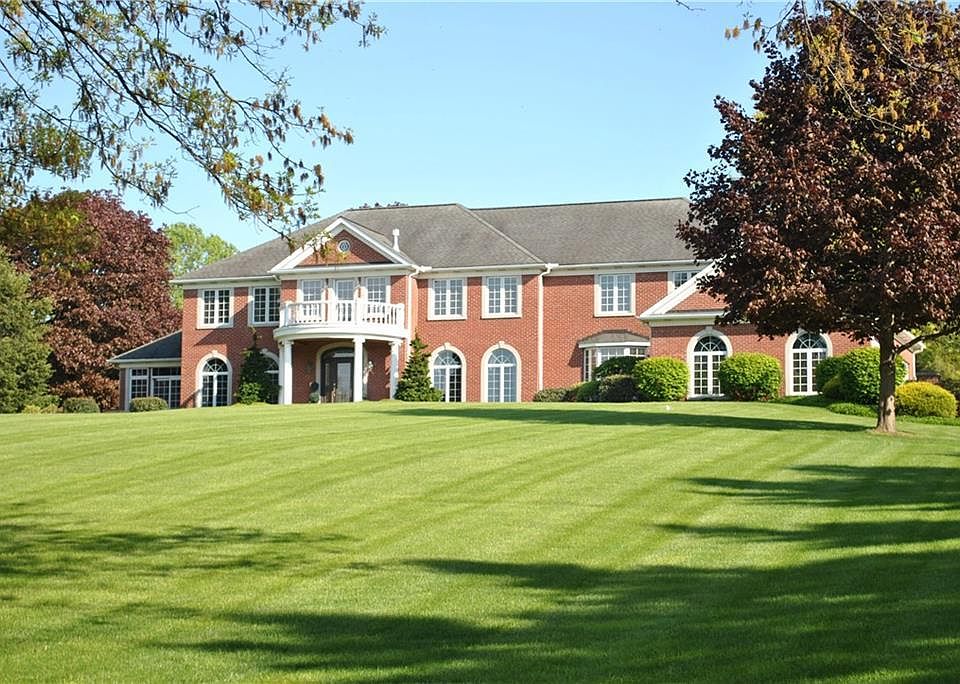 Drastic PRICE REDUCTION on this elegant Georgian Colonial Brick mansion. Resting on 3.88 acres of a 9.4 parcel. Built in 2000 by D Haller, it features Cherry wood trim & floors. With over 14 rooms, a total 7000 sq ft, 5 Brs, 5.1 baths; finished LL game room, billiards room, small kitchen w/bath could function as guest suite. Gas well supplies supplemental heat. 2 det. garages for 7 additional cars. Pergola w/grill for outside entertaining. Now priced below appraisal, assessment & construction.