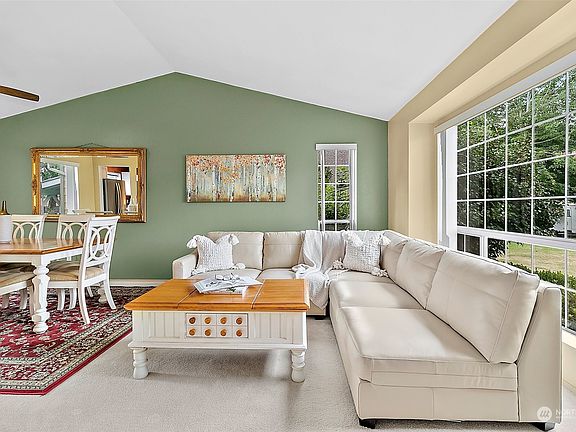 Desirable Rainer Trails home w/excellent floor plan! Lg driveway leads to covered front porch that opens to foyer w/vaulted ceilings. Perfect blend of sophisticated & casual spaces. Abundance of natural light from Lg window in formal Living rm to dining rm. Kitchen overlooks dining space & great rm w/cozy gas FP. Main floor bdrm, 3/4 bath & utility room! Retreat to Primary Suite w/private views of backyard. Upstairs loft leads to full bath, Lg Bonus rm/optional 5th Bdrm! Sliding glass door opens to backyard's extended covered back patio! Mature landscaping, beautiful lush gardens w/fruit trees & private trail access to Rainier Trails Park! Lg 2-car garage w/work bench & storage! Minutes to downtown & Award-winning Enumclaw Schools.