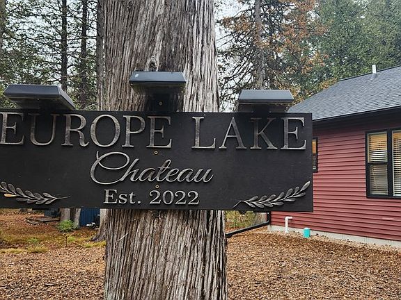 Nestled in the woods, just footsteps from Europe Lake. This delightful 2 bedroom 1 bath cottage has a welcoming covered porch, spacious living room, dining area and U-shaped kitchen. There is luxury vinyl flooring throughout, plenty of storage, and large windows to let in the sunshine. Built in 2022, everything is like-new, including the furnishings. This could be your own vacation or year-round home, or use it as a short-term rental. Liberty Grove Park and the boat launch are just down the road, at the end of Europe Lake Road.