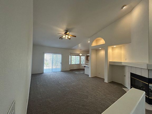 This spacious 3 bedroom, 2 bath home with a 3-car garage offers carpet and wood laminate flooring. Enjoy both a large living room and family room with a cozy 2-way fireplace. The kitchen features tile counters, a breakfast bar, and a bright breakfast nook. Additional highlights include ceiling fans throughout, a versatile den, and beautiful lush landscaping.