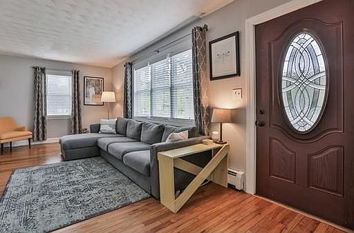 This bright and cheery home is sure to please. You'll find modern updates and pottery barn colors throughout, along with beautiful hardwood floors. Enjoy the outdoors on your oversized deck overlooking the partially fenced in yard. The cathedral and beam eat-in kitchen is packed with cabinets and counter space. Decorative wainscoting and lots of natural light adorn the dining room. New bathroom, vinyl siding, vinyl windows, two storage sheds, full basement for storage and more. All this on a tree-lined street with sidewalks just a short distance to the Heath Brook Elementary School. Showings begin at open house Saturday, May 11th from 12 - 2 pm.