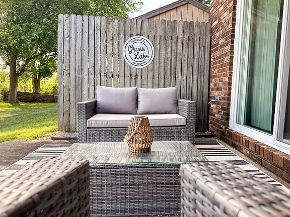 Discover our newly renovated duplex on beautiful Grass Lake, MI! Less than 30 minutes from Ann Arbor! This unit has everything you need to relax with an open concept living room, fully equipped kitchen, 3 cozy bedrooms, 1.5 bathrooms, and plenty of lakeside living. Enjoy breathtaking lake views from your private patio, perfect for morning coffee or evening drinks. Direct lake access with a private dock offers endless water activities. Fully furnished just as seen in pictures.