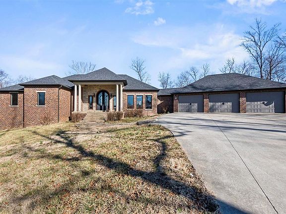 Welcome to your private retreat! This stunning all-brick and stone home is nestled on just over 4 acres, located just off the interstate, on the end of a dead-end road giving both convenience and privacy! Step into the home you will be greeted by the elegance of coffered ceilings in the living room with large windows, perfect for entertaining guests or unwinding after a long day. The large kitchen boasts a center island, ideal for culinary creations and gatherings with loved ones. Escape to the main floor master suite, a private oasis with ample space and luxurious amenities. With two bedrooms in the basement, along with a bathroom and a cozy living room, there's plenty of room for guests or family members to enjoy their own space. The three-car garage provides ample storage for vehicles and outdoor equipment. Outside, soak up the sun and enjoy warm summer days in the above-ground pool, surrounded by the tranquility of your expansive property.