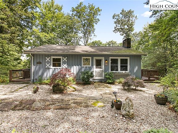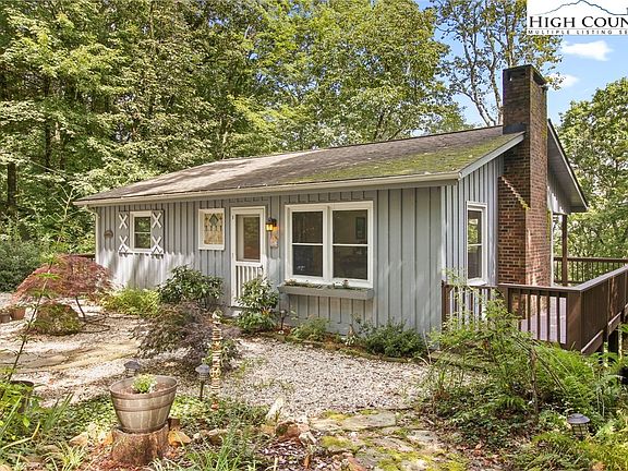 Charming "treehouse" cottage in Boone – great mountain getaway, investment property (short term rentals allowed) or year-round residence - especially for those commuting East of Boone (short drive to Hwy 421 & Blue Ridge Parkway)! This 4BR 2BA home offers a total of 1664 square feet with 2BR 1BA and 832 sf on EACH of the 2 levels (propane fireplace w/ fan provides auxiliary heat on main level while a propane monitor heater exists on lower level - specs for heater indicate it serving up to 690 sf). Quiet neighborhood in a great location just 10 minutes from New Market Center in Boone. Enjoy level entry, one level living, open main living area, wrap-around deck, and 2nd living space in the finished and walk-out lower level... with mother-in-law or guest apartment potential. Though currently nestled in a treehouse-like setting with seasonal views, there is opportunity to open up the trees for year-round views. Amenities: gutter leaf guards, new window treatments on main level, Rinnai tankless hot water heater. Listing price takes into consideration future heating updates that a buyer might wish to make!