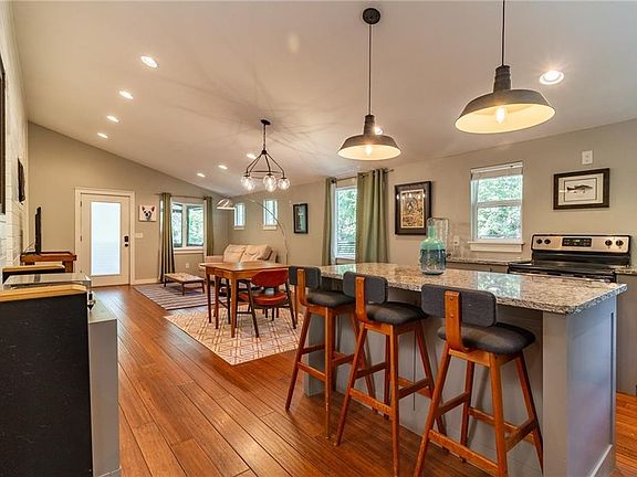 Newly remodeled home with a stunningly adorable curb appeal and quaint covered front porch. Perfect investment opportunity for an AirBNB. This home is 2 bed/2 bath near Springdale and Fayetteville. With neutral colors, bright recessed lighting, as well as lots of windows, allows for a ton of natural light. Open floor plan w/ beautiful hardwood & tile floors. Updated kitchen with granite countertops, 3-seater island, tons of cabinet space & stainless steel appliances. Updating lighting fixtures in the main living/dining/kitchen. Master bedroom has ensuite has an updated tub/shower combo and large walk-in closet. Large, fenced in and luscious, shaded back yard with patio makes this the perfect home for grilling out and entertaining friends. This is a home you won't want to miss!