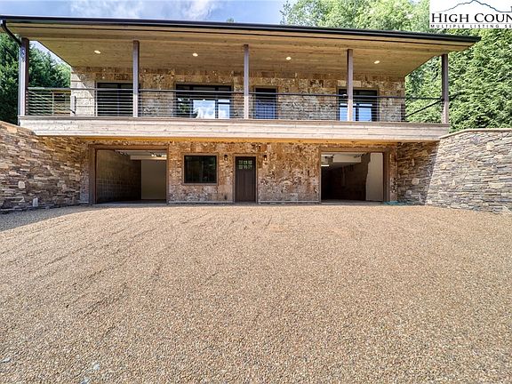 Brand New Construction and now move in ready! Gorgeous craftsman style bark and stone sided cottage overlooking the New River. Located just 10 minutes from Boone and walking distance to the Pine Run River access, this property would make a wonderful full-time, second home or vacation rental. Walk in the front door and you'll find a spacious game room/foyer with access to a garage on either side. Upstairs is a large open kitchen/dining/living area with nine foot ceilings. The living room has live edge shelving, a fireplace and door leading to the expansive front porch. The porch features cable railings, ghost wood ceilings with recessed lighting and a view of the river. The kitchen has gorgeous cherry cabinets and concrete counters by renowned BDWG Concrete Studios. The master suite is on one side of the house and guest room on the other side. The outdoor patio is AMAZING! Huge stone walls and a wood burning fireplace with pizza oven, pergola and privacy. This home is built with quality materials: Solid wood doors, custom stonework, ghost wood shadow box trim, poplar bark siding, cherry cabinets, custom shelving throughout the house and much more. Furniture is virtually staged.
