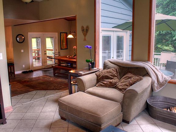 Not your customary Girdwood chalet, this architecturally pleasing home features a sprawling main floor with a completely remodeled nearly new Kitchen, large Dining Room, spacious Living Room, and easy access to outdoor living by way of multiple Deck(s) with access to the private yard or a south facing Deck on the front of the home. Private Master Suite upstairs. Large Entry. Plenty of parking.