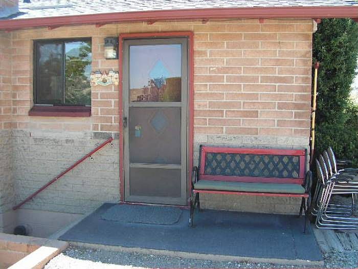 This is the upper level of an up/down duplex. Basement unit is occupied. All utilities are included. New carpet and new paint. The kitchen has been recently remodeled and includes: refrigerator, electric stove and microwave. Kitchen and bathroom have granite countertops. Stackable washer and dryer. Evaporative cooler in living room and central oil heat (included in rent). Backyard has horseshoe pit, patio, natural landscaping and amazing views!