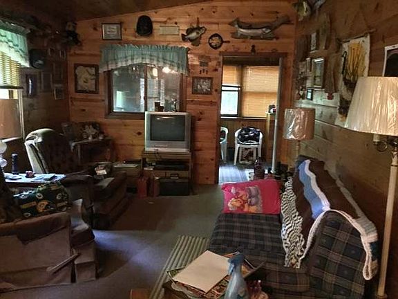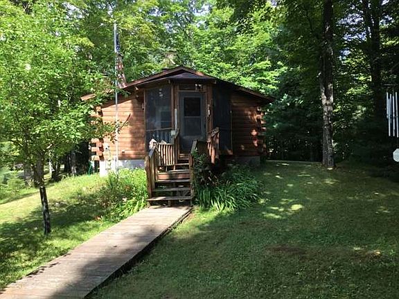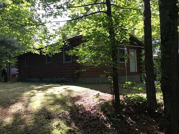 #434N This Cozy Felser Log home is set on a quite, wooded lot. The house has 2 large bedrooms and an open concept kitchen, dining and living room. The wood shiplap walls and brick wood burning fireplace add just the right touch of rustic charm! The full, walkout basement has a pellet stove and offers ample room for increasing the finished square footage. The 2 car garage can be heated by the wood stove. The lot has a small cabin currently being used for storage, but it has potential as a playhouse or possible guest cabin. If you have been searching for that perfect north woods cabin, this could be the perfect one! Call or stop in today!