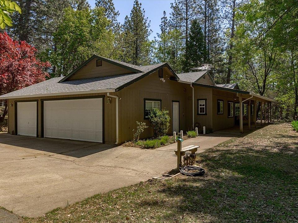 This custom three-bedroom, two-bathroom home sits on 8.49 acres, with over 4 acres of usable land featuring horse amenities and space for a detached ADU or a shop. The remaining acreage offers privacy and includes a high-producing well of 22 gallons per minute. Vaulted ceilings highlight the home's floor plan for an airy feel. The kitchen features granite countertops, a double sink, built-in double ovens, a six-burner stovetop, and pantry cabinets. A wood-burning stove on a classic brick hearth adds charm to the living and dining rooms. The primary bedroom has a walk-in closet and a large ensuite bathroom with a soaking tub. An indoor laundry room off the kitchen leads to the three-car garage. Ideal for animal lovers, the property includes a barn with three stalls, a tack room, and paddocks. There's also a spacious arena perfect for warming up and exercising your horse and room for gardening. The house interior is freshly painted and ready for personal touches. Nearby Sly Park Lake Recreation Area and an extensive trail system offer year-round hiking, mountain biking, and horseback riding opportunities. Plus, there are two ski resorts within an hour's drive.