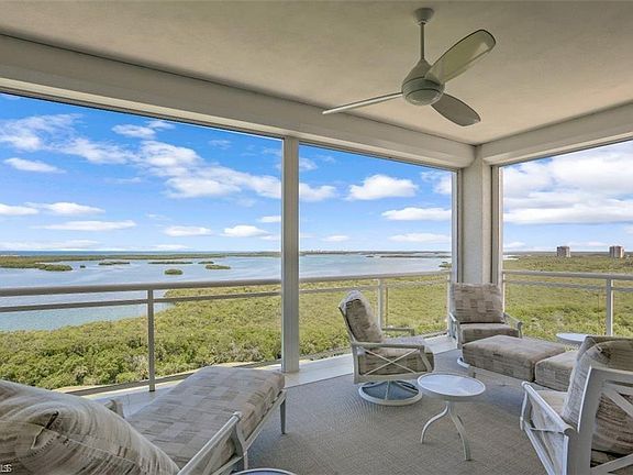A HORIZON WORTH WAKING UP TO AVAILABLE THIS SEASON. Perched on the 16th floor, this light-filled corner residence at Seaglass in Bonita Bay captures panoramic views that sweep across the Gulf of Mexico, Estero Bay, and the Intracoastal waterways a breathtaking tableau of sea and sky in perfect harmony. From sunrise to sunset, the scenery is nothing short of spectacular. A private elevator opens directly into nearly 4,000 square feet of beautifully appointed living space. The expansive great room, dining area, and gourmet kitchen flow seamlessly together, framed by floor-to-ceiling glass that opens to a spacious open-air balcony the perfect vantage point for golden-hour sunsets over the Gulf. The primary suite offers a serene retreat with dual baths, a shared walk-in shower, and generous closet space, while two guest suites, each with en suite baths and private balconies, enjoy magnificent sunrise views to the east. A separate den and half bath provide additional space for work or relaxation. Thoughtful details and elevated finishes define every corner including motorized window treatments with blackout shades, a built-in grill, wine cooler, and three wall-mounted Smart TVs for effortless comfort and entertaining. Residents of Seaglass enjoy an unparalleled collection of amenities, from the resort-style pool, spa, and outdoor gathering terrace with fireplace, to the private theater, fitness center, spa with massage rooms, and elegant social and billiard rooms. Available guest suites and a catering kitchen within Seaglass provide every convenience for visiting friends and family. Experience luxury coastal living at its finest where sophisticated design meets awe-inspiring views.