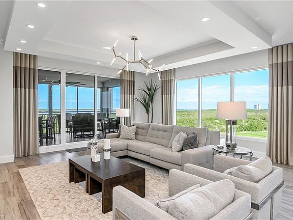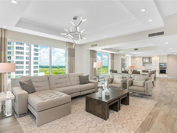 Available November & December 2025. Minimum 60 days for a lease. This luxury home in the sky has been customized, renovated & appointed under the direction of an award winning decorator. Take the private entry elevator to the 7th floor end unit to experience an open great room floor plan with a layout & finishes that are truly impressive. This condo features 3 bedrooms plus den, 3 full bathrooms, powder room & 2 assigned parking spaces. The expansive great room is flooded with natural light, beautiful wood-look tile complements the contemporary coastal design, & the well appointed kitchen features natural quartz counters with a gas cooktop. There is also a gas grill on one of three terraces. Bonita Bay offers Beach Club access, 12mi walking & biking trails, 3 parks, full service marina w/restaurant, tennis/pickle ball/basketball at Riverwalk Park & numerous community association activities. Seaglass offers tenants: roof top access with BBQ grill & seating, community pool/spa, sauna, fitness center, theater room, billiards room & community room.