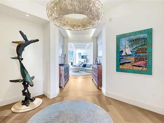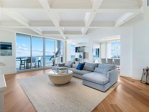 This truly remarkable 4-bed + den, 4.5-bath Seaglass Penthouse with a private 2.5-car garage offers a bird’s-eye perspective of paradise. With panoramic views of the Gulf of Mexico and Estero Bay, every room was designed around the drama of the horizon, where endless sky meets shimmering water. Elegant coffered and tray ceilings with cove lighting elevate the open layout, while floor-to-ceiling glass immerses you in natural light and sweeping coastal vistas. A cozy fireplace, wet bar, and two open-air balconies set the stage for effortless entertaining and tranquil evenings aloft. The chef’s kitchen impresses with a 48" Sub-Zero refrigerator, Thermador gas cooktop, Bosch wall oven, dual wine coolers, and rich light wood flooring throughout. Smart-home features include a Lutron shading system, audio/visual network, and whole-home automation. Within Seaglass, enjoy concierge services, a private theater room, guest suites, and a resort-style pool and spa. Beyond, the Bonita Bay lifestyle unfolds an on-site marina with restaurant and boat storage, miles of walking and biking trails, kayak rentals, and a staff-attended private beach club on Bonita Beach just minutes away. Private Membership at The Club at Bonita Bay opens access to five championship golf courses by Arthur Hills and Tom Fazio, 18 tennis courts, pickleball, croquet, five restaurants, and a state-of-the-art Lifestyle Center and spa. Where sky, sea, and luxury converge, this penthouse stands as a sanctuary in the clouds, crafted for those who see beauty not just in the view, but in every detail that frames it.