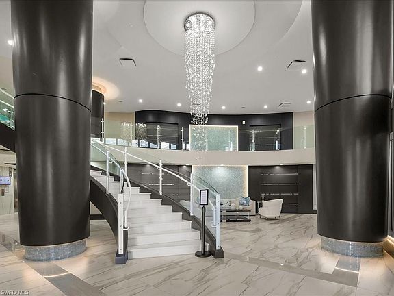 Welcome to Seaglass sky residence 2103! Situated on the 21st floor of the luxurious Seaglass tower, this impressive home conveys with stunning high-end custom finishes including wide plank wood flooring throughout the main living area, custom floating ceiling by Woodworkers Of Naples, custom rift oak art boxes, custom designed electric fireplace, tasteful lighting fixtures, motorized shades and window treatments, custom closets, and newly installed glass railing on the main, west-facing lanai - complete with world-class views of Estero Bay and the Gulf of America! This generously-sized 3 Bedroom + Den/3.5 Bath floor plan has almost 3100 feet under air, featuring a gorgeous master bedroom retreat with an oversized shower and large soaking tub and extra custom cabinetry. Each of the secondary bedrooms enjoy en-suite baths for the ultimate guest experience, complete with their very own east-facing lanai. Bonita Bay enjoys its status as one of a small handful of truly world-class, amenity-rich gated communities in the Bonita Springs/Naples' market, and includes access to the Bonita Bay Club with its 5 golf courses, private beach club, 12 miles of walking trails and bike paths, full-service marina and restaurant, tennis, pickleball, full service fitness center complete with spa, and so many other activities to choose from. Bonita Bay is located just a short drive to RSW Internation Airport, world-class dining and shopping, and downtown Naples. Discover your destination today!