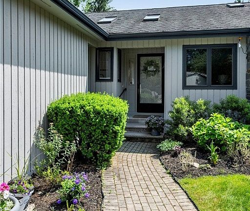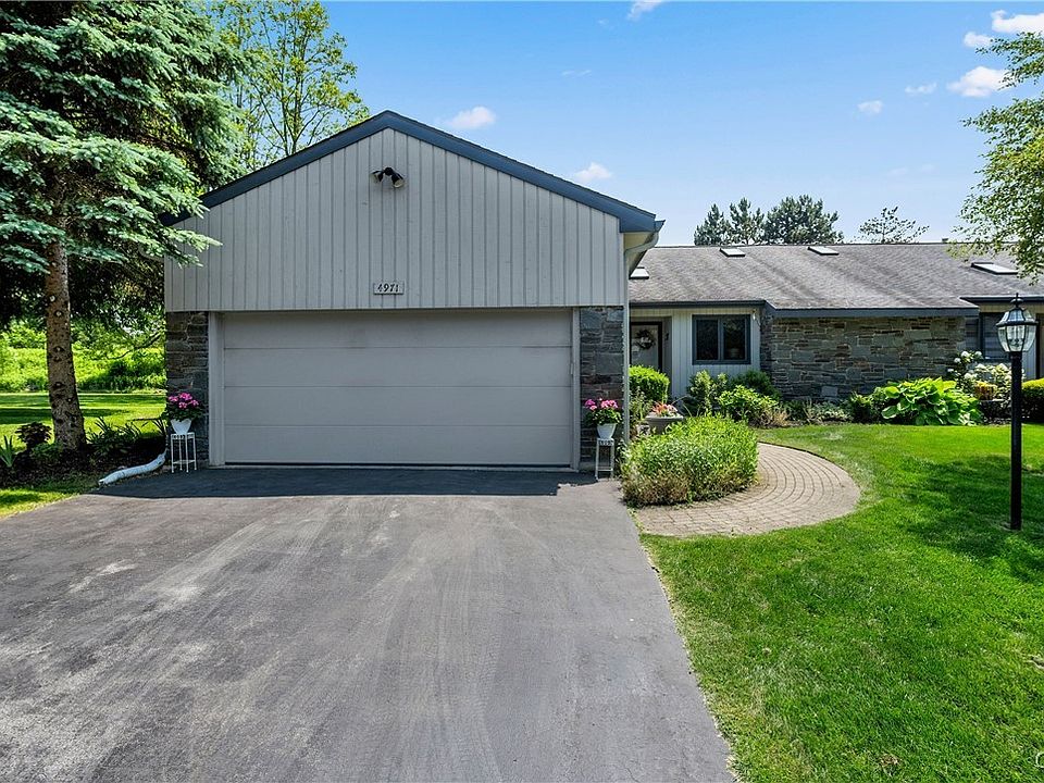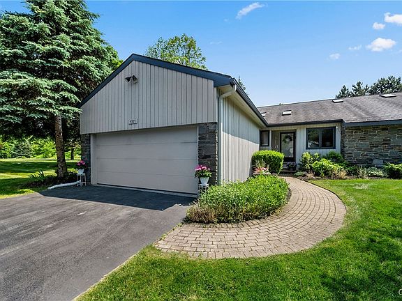 Immaculate, Immaculate, immaculate is the only way to describe this lovely condo located in desirable Ravine Ridge Estates. End units rarely come for sale and this end unit offers a large common area on one side allowing for plenty of privacy. From the minute you enter you'll notice how light and bright this home is with soaring cathedral ceilings, skylight, floor to ceiling stone fireplace in family room and a wall of glass that overlooks deck and treed backyard. The open floor plan offers a large kitchen with double ovens, electric cook top, lots of cabinetry and peninsula with veggie sink. The eat-in area has sliders to access the all season sunroom (New split heating/Air unit) with glass all around overlooking the common area. The large laundry room is conveniently located off the eat-in area. The huge primary suite has standup shower with glass doors, double sinks and jet tub. The other two bedrooms are very good size (one is currently being used as a den). If you still need more space the 12-course basement is dry and is ready to be finished. Showings begin 6/18/25 9am. Seller reserves the right to set a final and best deadline if multiple offers are received. There is a $775 one-time start-up fee due at closing for HOA. (Exterior paint to be done Summer2025). There is a large cedar closet in the basement. Don't miss this opportunity!