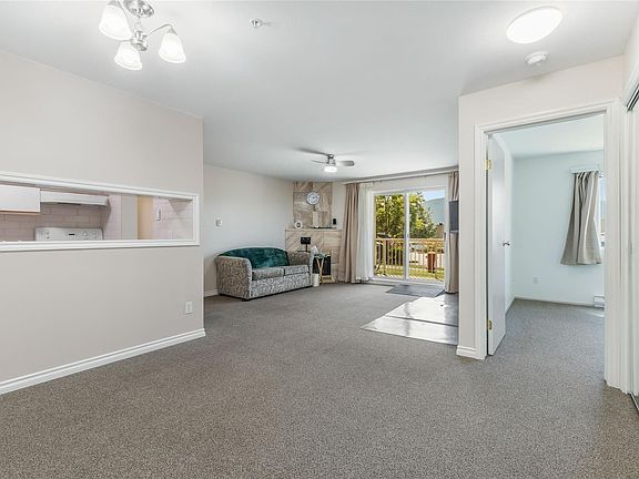 Great value for a 1143 sq ft 2 Bed + Den, 2 Bath Ground Level Condo in Popular Rutherford Pointe This unique floor plan offers a contemporary kitchen with abundance of cabinets and counter space, a separate dining area, and a spacious 14x14 living room with feature gas fireplace and sliders to a private patio with breathtaking Mount Benson views. Bedrooms are on opposite sides for privacy—primary includes a walk-in closet and 4-piece ensuite with jetted tub, and the second bedroom also has a walk-in and large picture window. The den is opposite a laundry area with full-size stacker washer/dryer and oversized pantry/storage. Additional features include neutral colour tones,updated fixtures, flooring, tinted windows, and 3-piece main bath. Enjoy the pull-down sunshades on the patio, easy access in and out, secured entry, and underground parking if available. Close to shopping, theatre, gyms, restaurants, and transit. Size approx verify if important